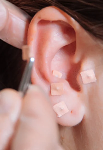 Cristais ou sementes- estimulação em pontos específicos na região da orelha para tratamento de dores, doenças e outros desequilíbrios.
